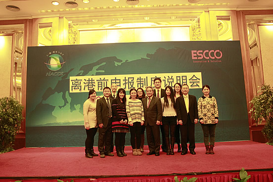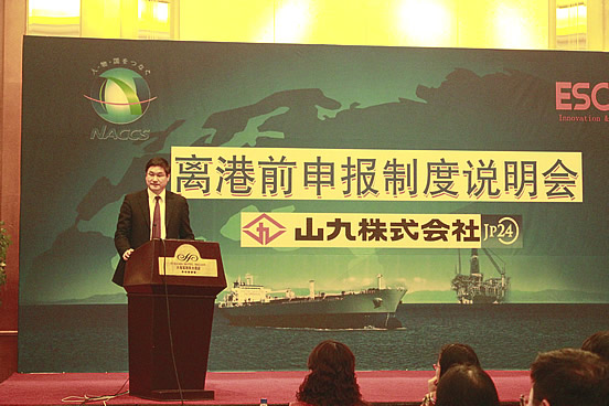 2014年1月16日,日本山九株式会社在大连富丽华大酒店天波府召开了“离港前预申报制度”(日本版24小时申报制度AFR)说明会,会议邀请了日本海关系统的“进出口・港湾关联信息处理中心株式会社”(简称NACCS中心)参加,NACCCS就该制度的立法宗旨和其应用做详细说明,山九株式会社是NACCS签约实现了系统连接的电子服务供应商(简称SP),山九株式会社就离港前预申报系统(以下简称“JP24SP系统”)做概要介绍。